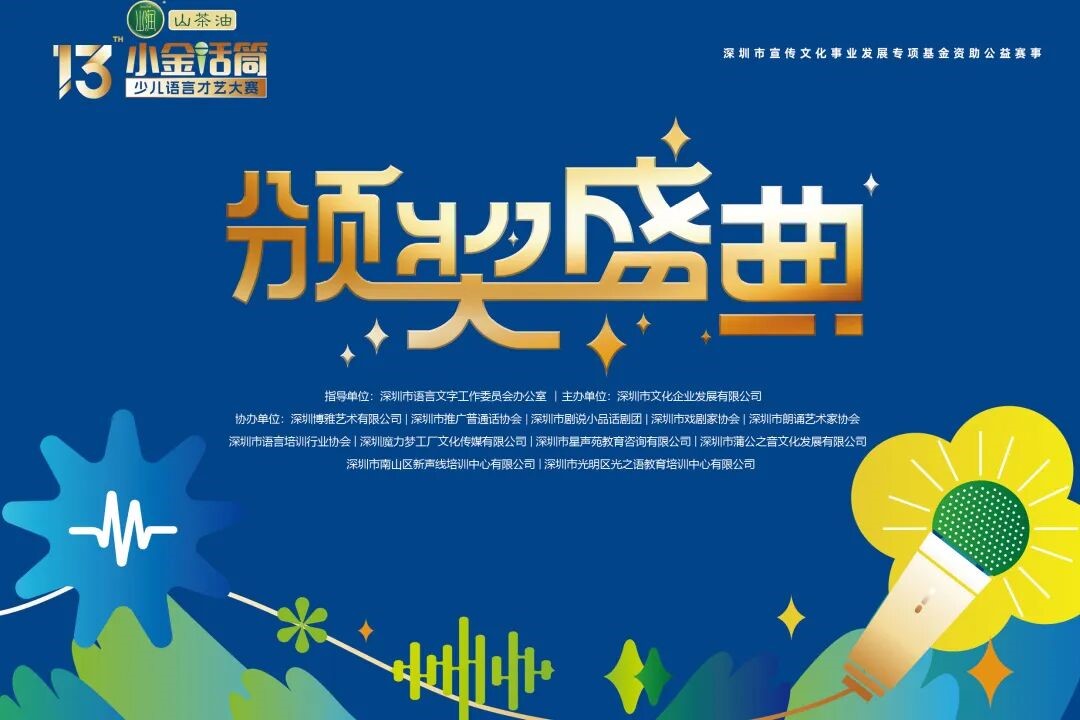 12月28日下午,第十三届“小金话筒”少儿语言才艺大赛颁奖盛典在华侨城华夏艺术中心盛大举行。来自深圳、香港、惠州、中山、东莞等粤港澳大湾区城市的多家培训机构、优秀指导教师及获奖选手齐聚一堂,共同见证这一属于少年儿童语言艺术的高光时刻。