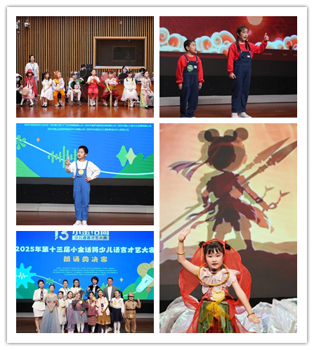12月7日,朗诵类决赛紧随其后,主题紧扣“童声童语”和“语见经典”,分为低龄组(学前)、少儿A组(一至三年级)、少儿B组(四至六年级)、少年组(七至九年级)四个组别。选手们或深情朗诵《袁隆平爷爷的稻田》《彩色的中国》,展现浓厚的家国情怀;或创新演绎自创诗作《青山不老》《在冬天的麦苗上看到中国的春天》,语言清亮、意象丰富。《故宫御猫夜游记》《宇宙的另一边》《珍惜》《青衣》《纸问千年》则以奇幻想象与文化底蕴打动人心,小选手们用清澈的童声娓娓道来故宫的神秘、宇宙的浩瀚、时光的厚重,仿佛引领观众进入一个个奇妙的世界。众人穿梭于历史长河与奇幻世界之间。《少年中国说》的铿锵语调与《长征路上的王小丫》的激昂情怀,使得现场洋溢着蓬勃的朝气与坚定的信念。稚嫩的声音中,蕴含着对国家与民族的深切认同。每一个抑扬顿挫的停顿,每一次饱含情感的眼神,都展现出小选手们对文字的深刻理解与对舞台的热爱,赢得了评委与观众阵阵热烈的掌声,令他们数度动容。