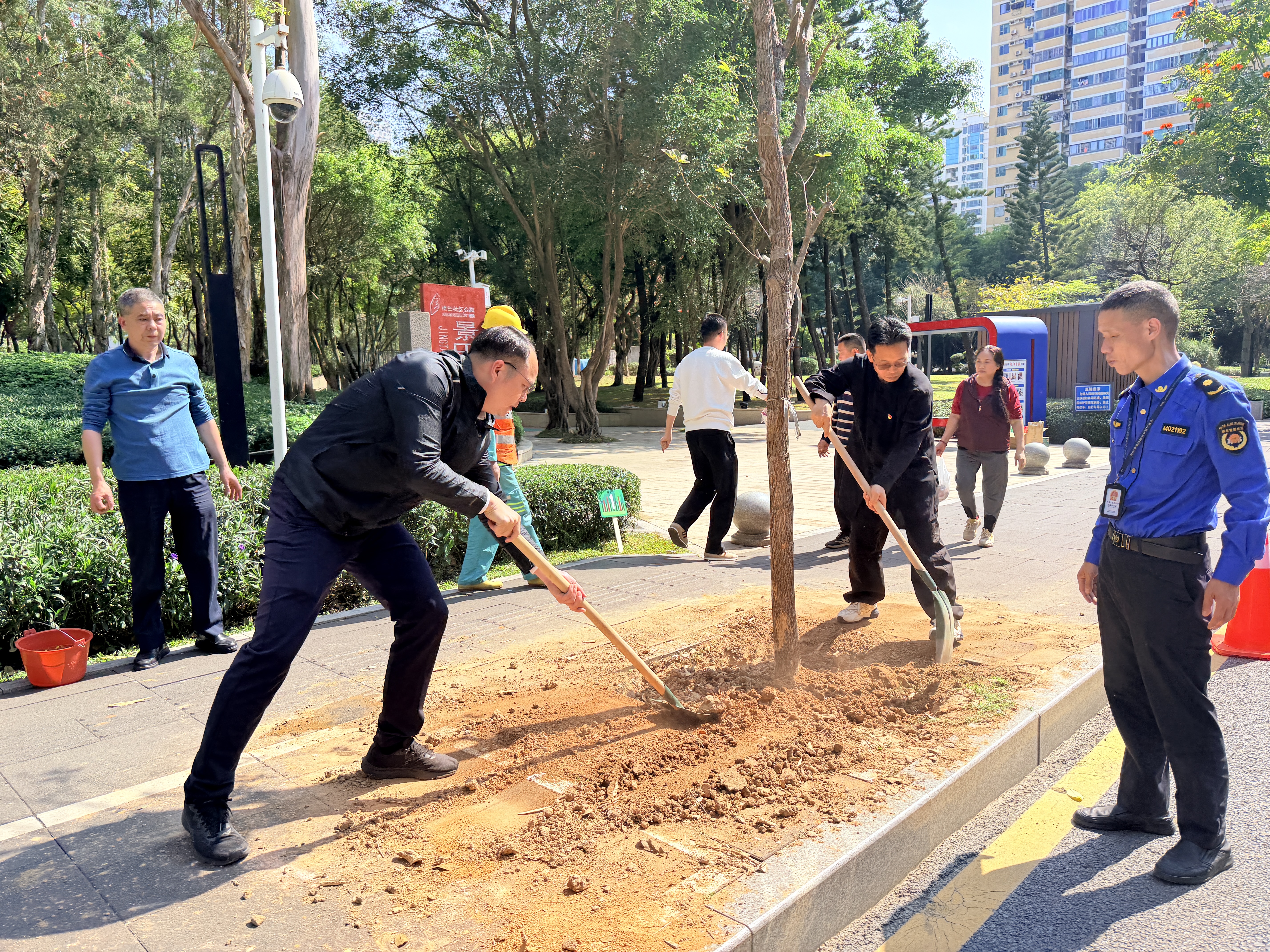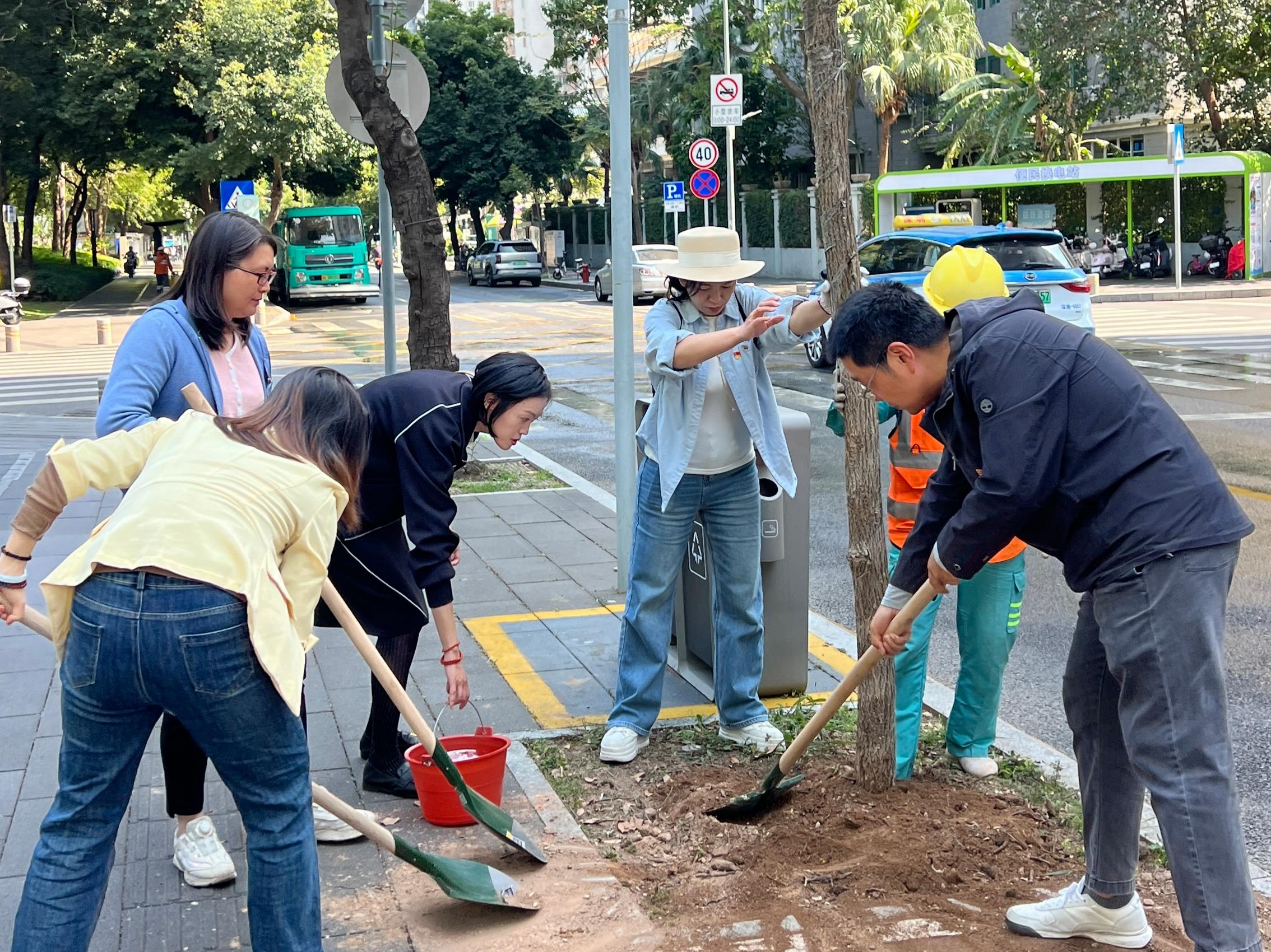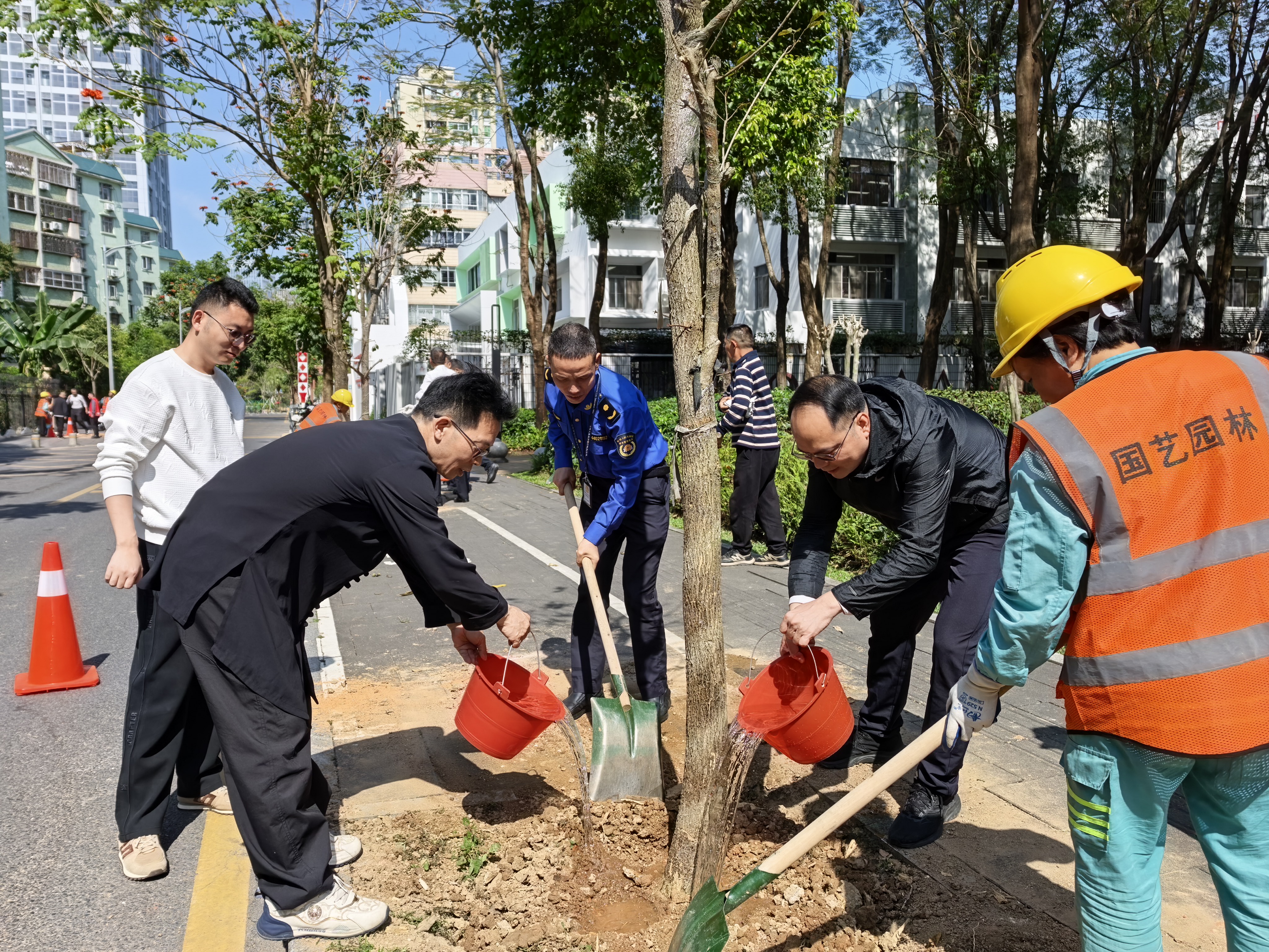 本次活动采取分组联动、多点开展的形式,两支队伍分工清晰、高效推进。上午,由莲花街道党工委书记范磊带队,联合深投文化公司党委委员杨志龙、学校师生代表、街道工作人员,在深大附中福田创新中学植树点携手劳作。下午,由深投文化公司党委书记、董事长、总经理颜明权带队,与莲花街道党工委副书记、办事处主任邓超带领的街道工作人员,在景田北二街公园植树点共同栽种。大家热情高涨、配合默契,顺利完成栽苗、培土、浇水等工序,共种植15棵黄花风铃木、2棵紫花风铃木、3棵榕树,为城区和校园增添盎然绿意。